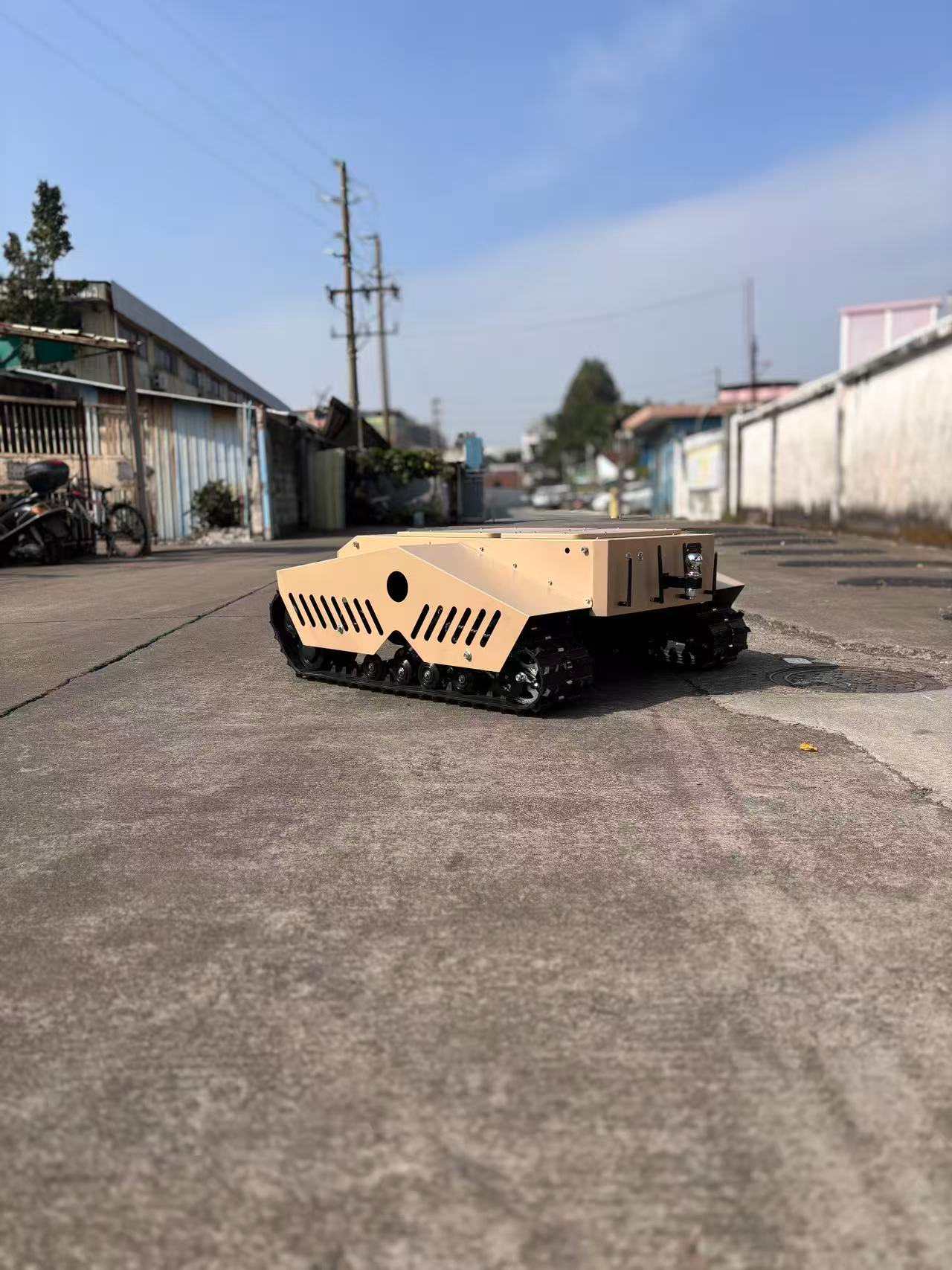 Drevet af dobbelte højkvalitets 3kw motorer og udstyret med store spor, er dette køretøj perfekt til transport i alt terræn.